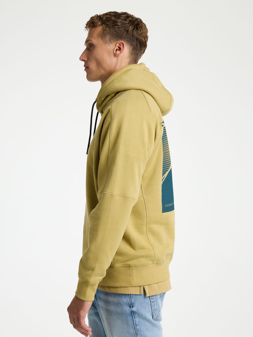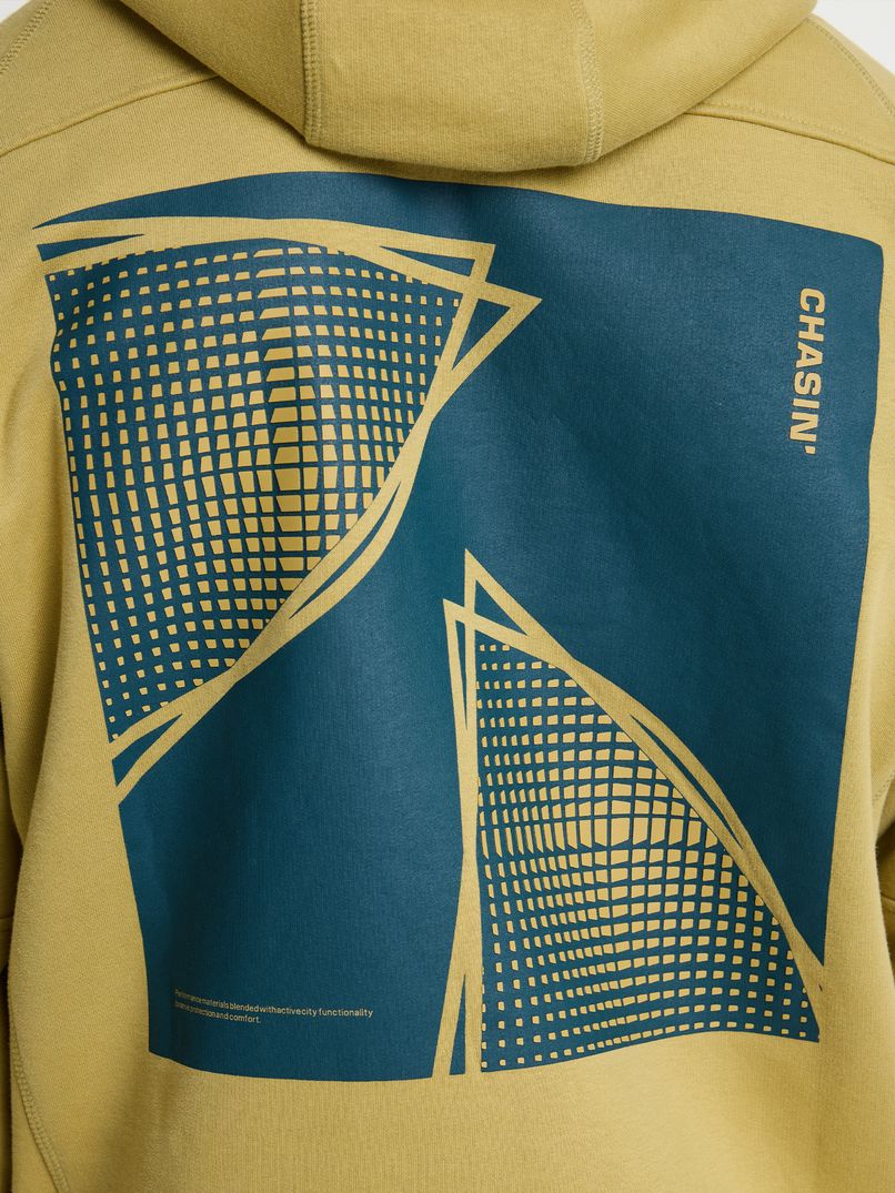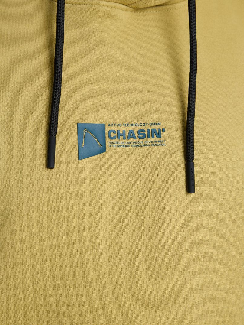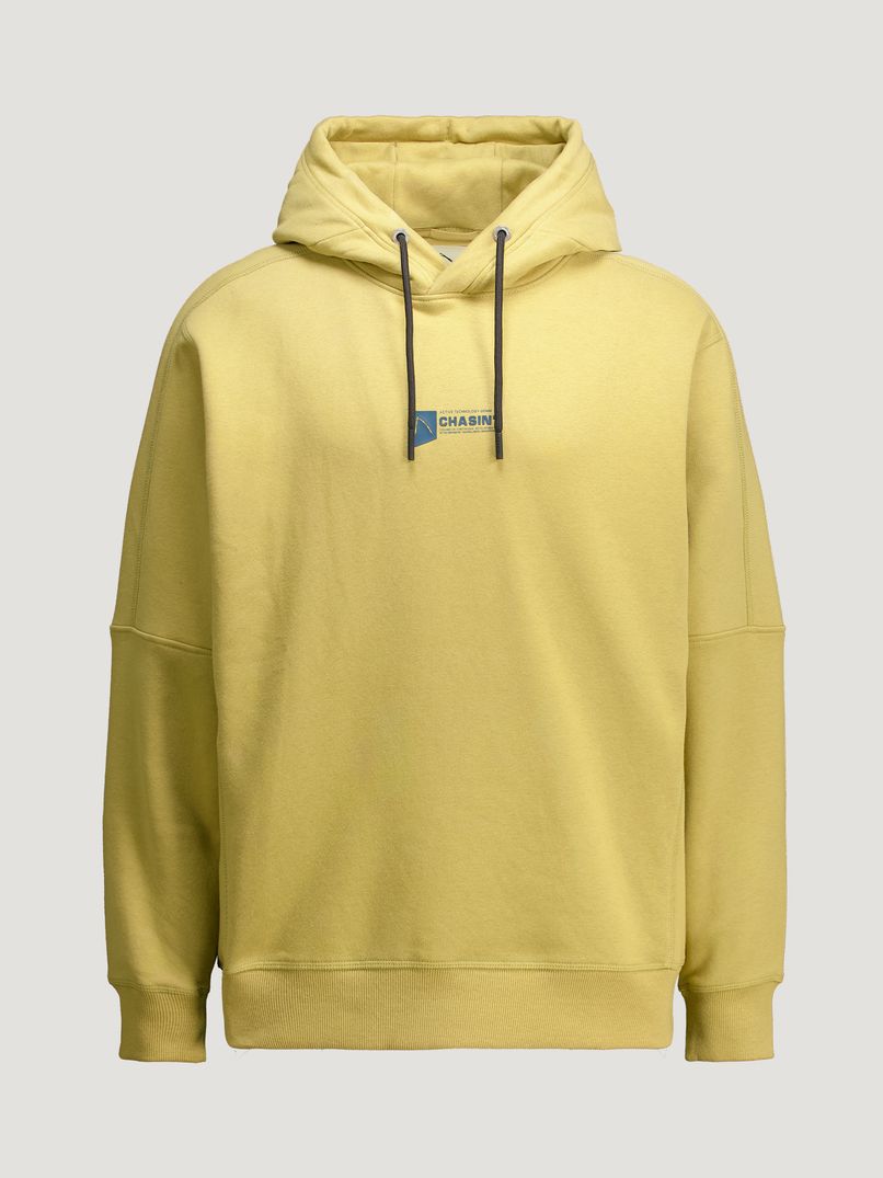 The Ido Hood is a yellow hoodie with a loose fit and rubberised artwork on the back. Thanks to its loose fit, the jumper is always comfortable to wear and features striking seams on the sleeves and back, giving it a sporty look. The elasticated cuffs also give the Ido Hood a boxy silhouette, ideal for pairing with a basic white T-shirt and nice jeans. This hoodie is also finished with subtle CHASIN' branding on the chest.