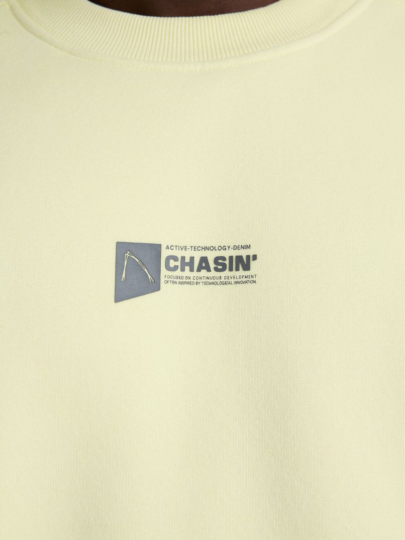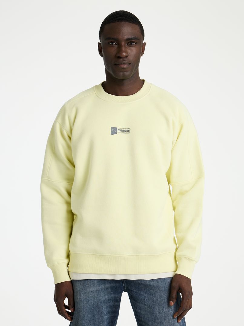 The Ido Sweat is a yellow sweatshirt with a loose fit and rubberised artwork on the back. Thanks to its loose fit, the jumper is always comfortable to wear and features striking seams on the sleeves and back, giving it a sporty look. The elasticated cuffs also give the Ido Sweat a boxy silhouette, ideal for pairing with a basic white T-shirt and nice jeans. This sweatshirt is also finished with subtle CHASIN' branding on the chest.