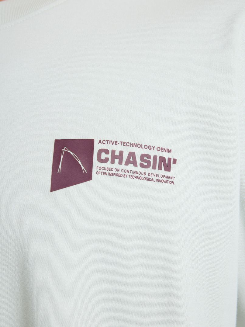 The Ido Tee is a loose fit t-shirt made with an interlock fabric composition. This ensures that the fabric feels stronger and smoother and has a high-quality look. The Ido Tee has rubberised 3D artwork on the back, a smaller CHASIN' logo on the chest and a round neckline. Wear it with a nice pair of jeans or shorts on warmer days and you're ready to go.