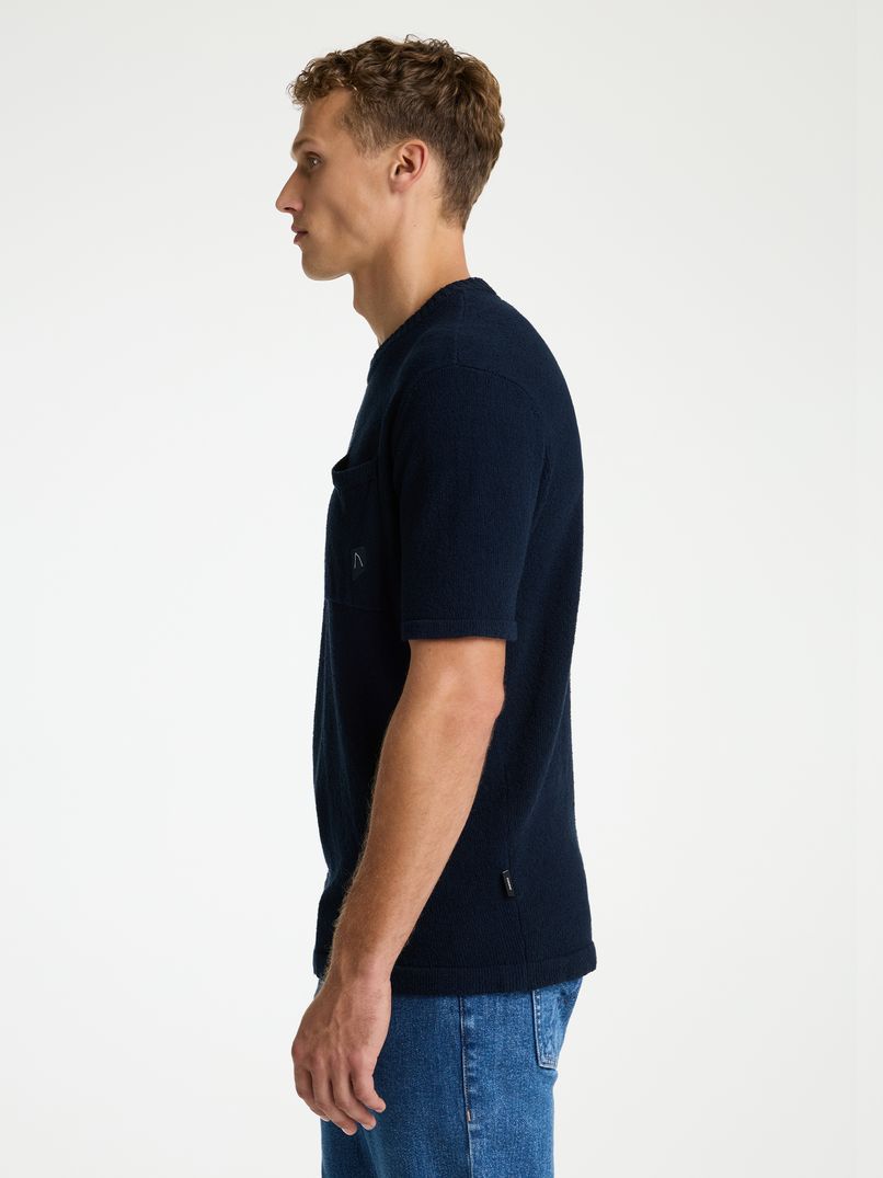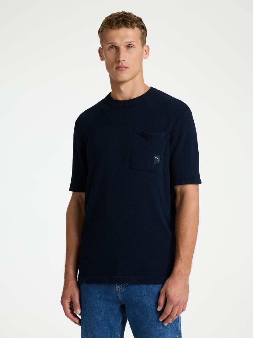 The Juno is a knitted T-shirt with a loose fit, giving it a casual look for any occasion. Thanks to its loose fit, the Juno is slightly more spacious around the body. The T-shirt is designed with a round neck and a stylish pocket on the chest. The chest pocket features a subtle CHASIN' logo, which is also repeated on the back.