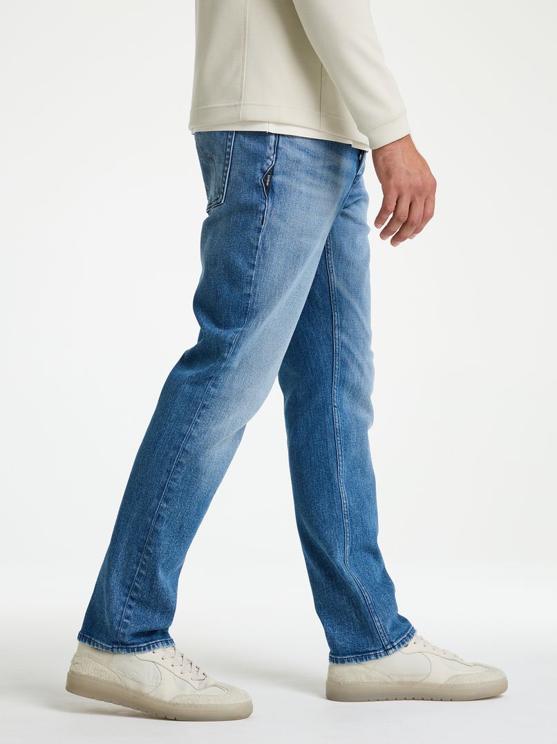 The Tavon Axxis is a regular fit jeans, meaning the fit is straight from the hips to the ankles. Made from a cotton-stretch blend, this jeans provides a comfortable soft feel and excellent freedom of movement. The jeans is designed to fall over the ankles and onto the shoe.