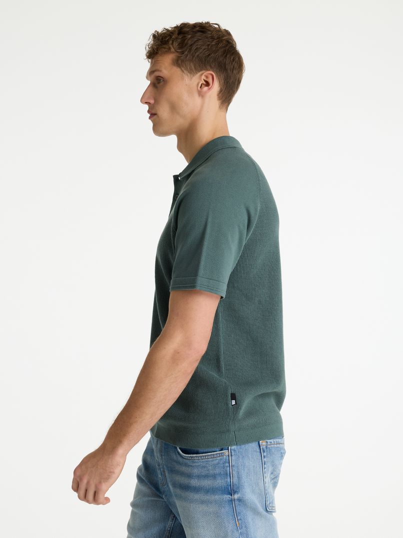 The Yuki is a knitted polo shirt with a contrasting texture on the shoulders, sleeves and collar, giving it a distinctive look. This polo shirt has a button-down collar, allowing you to style it yourself by wearing it fully buttoned up or more casually with one button undone. Thanks to its regular fit, the Yuki is always comfortable, and the elasticated hem ensures a great fit.